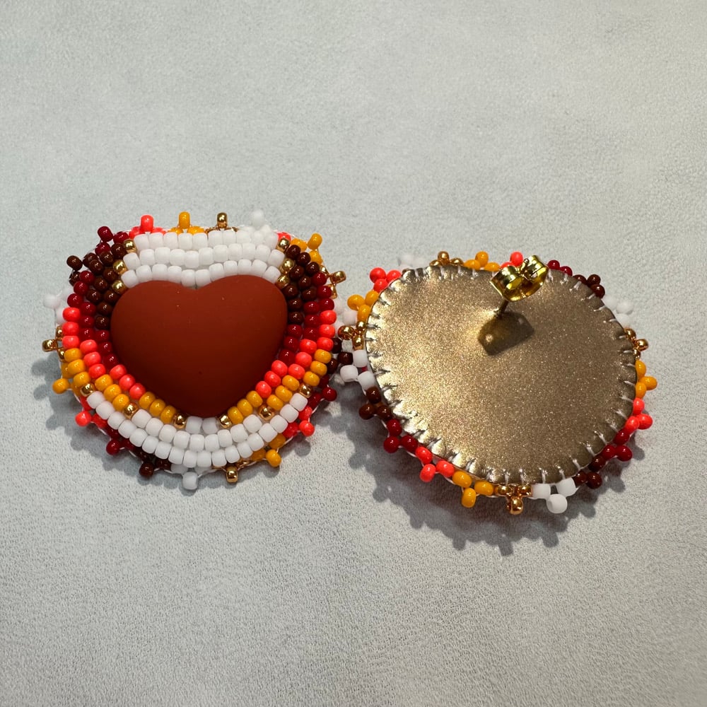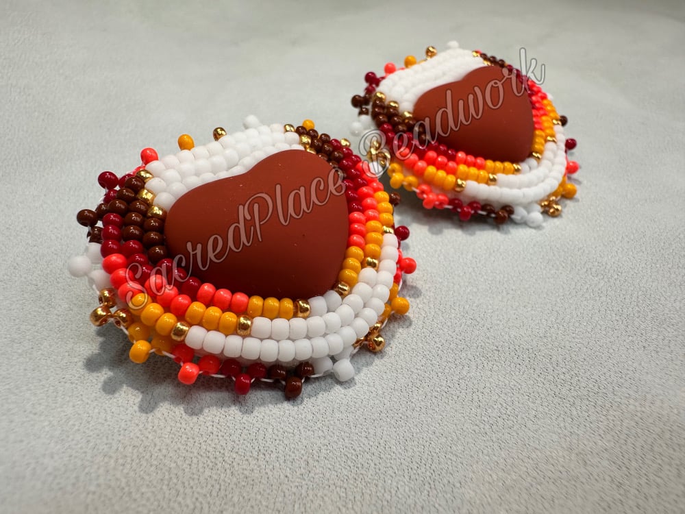 These Native American beaded earrings were designed with fall in mind. Featuring warm shades of brown, red, gold, orange, and white, they capture the beauty of the autumn season. Each pair is backed with metallic gold vinyl and secured with gold posts for a polished finish. Measuring approximately 1½ inches, they are lightweight and comfortable to wear. Add these stunning earrings to your beaded jewelry collection and embrace all the cozy vibes of fall.